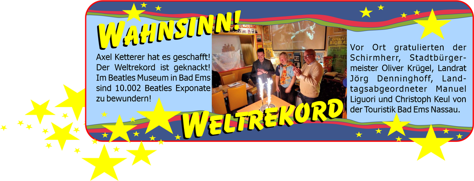 AXEL KETTERER HAT ES GESCHAFFT! DER WELTREKORD IST GEKNACKT! IM BEATLES MUSEUM SIND 10002 BEATLES EXPONATE ZU BEWUNDERN!