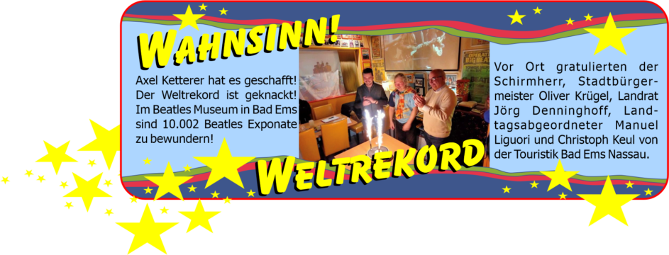 AXEL KETTERER HAT ES GESCHAFFT! DER WELTREKORD IST GEKNACKT! IM BEATLES MUSEUM SIND 10002 BEATLES EXPONATE ZU BEWUNDERN!